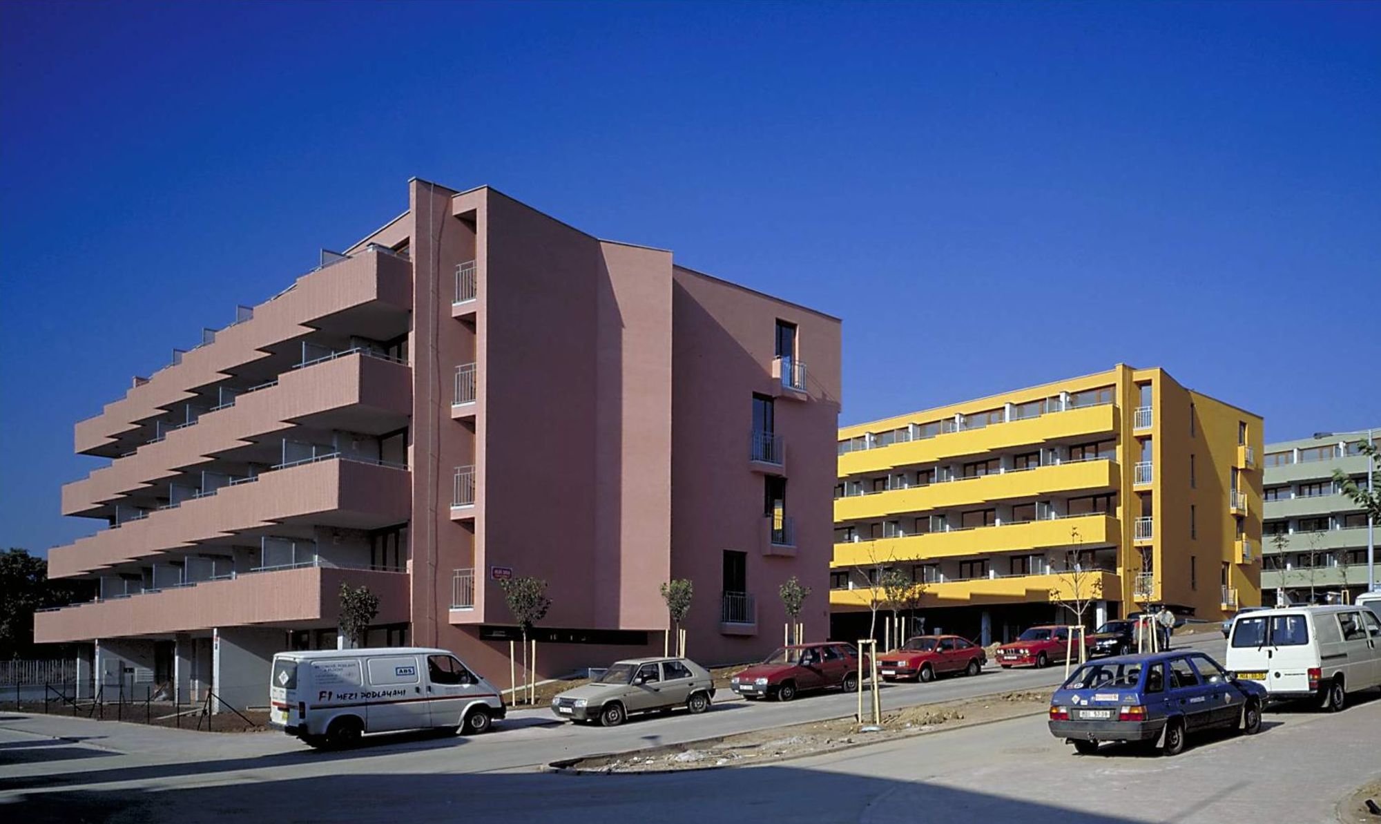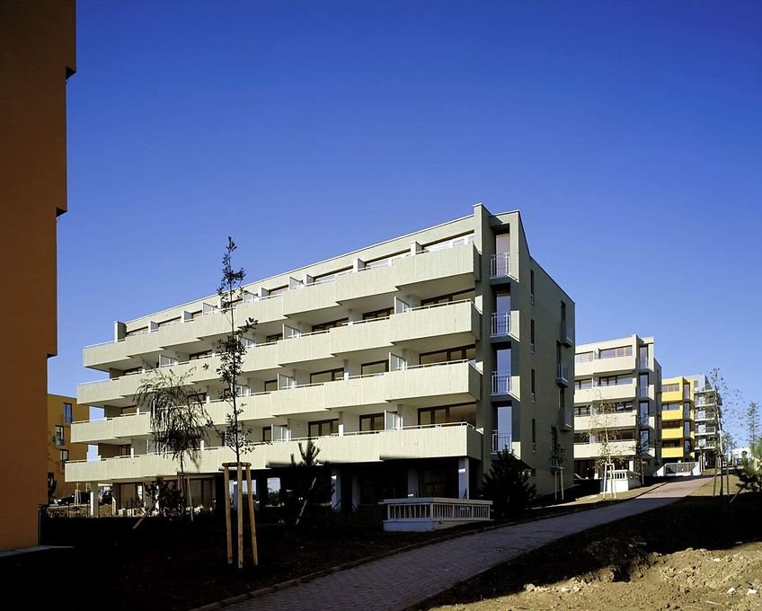 The housing complex was built in cooperation of three architectural practices – ARKÁDA, KAMA and DaM on a green field. The urbanistic concept based on a simple street network copying the shape of a natural amphitheatre perfectly makes for the breathtaking view of Prague. The variety of houses meets different requirements of clients. You can find traditional houses as well as luxury villas here. Their architecture emphasises simple shapes, spatial and layout purity, and colours you cannot pass unnoticed. The vast housing complex was inspired by two pre-war developments – Weissenhof in Stuttgart and Baba in Prague 6.